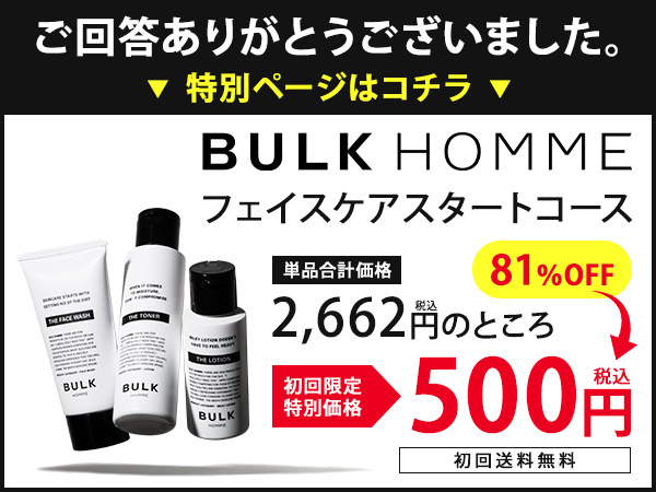 実は色々スキンケアを試してはいました。でもコンプレックスの肌は変わらず。BULKHOMMEは洗い上がりも気持ちいいし、爽やかさが続く!肌を褒められるようになって、自信がつきました!